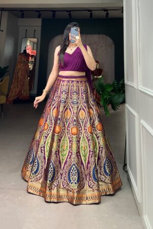Royal LookWeaving Zari Work Banarasi Silk Co-ord Set Lehenga With Georgette Choli (Purple)