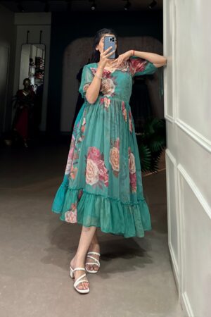 Bloom Beautifully Western Frock (Mahendi-Green)